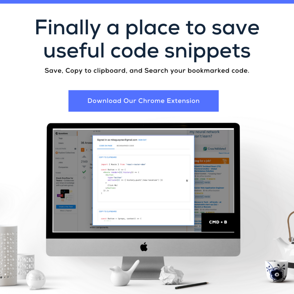 A chrome extension to save, tag, search useful code snippets. Easily bookmark code examples across StackOverflow, etc and go back to them later.