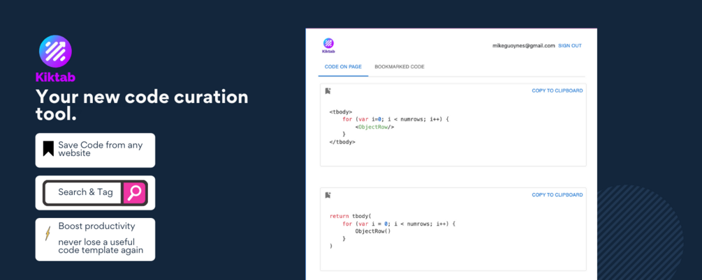 Kiktab Code - code snippet manager chrome extension