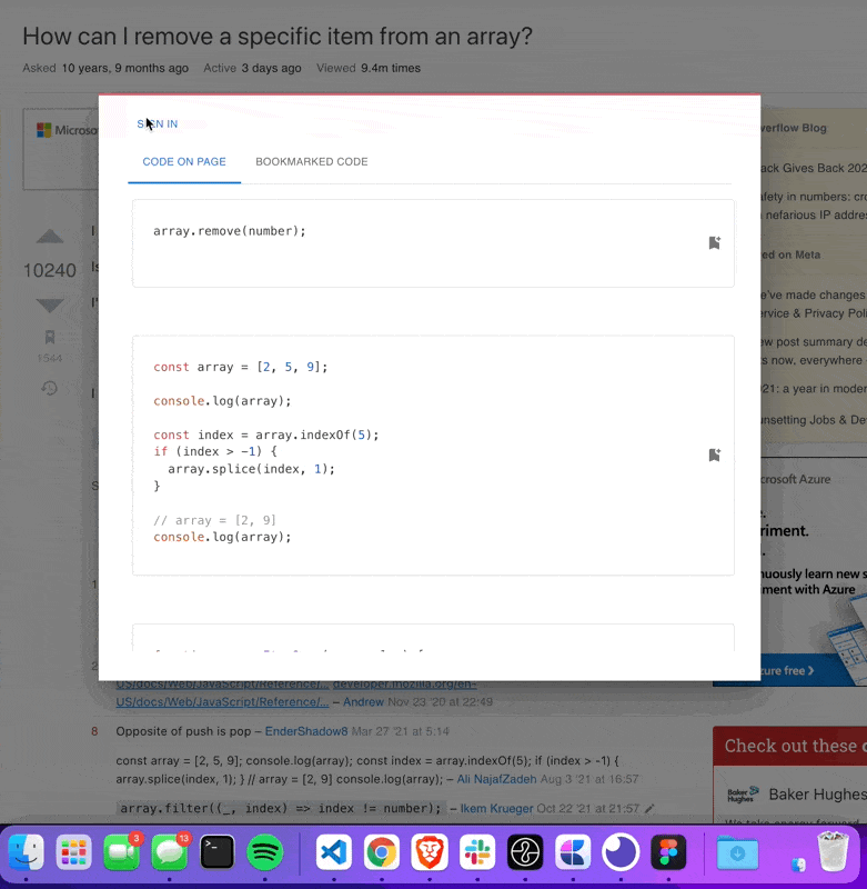 6. Open up any page with code (such as StackOverflow) page and hold command + B at the same time to open the bookmark